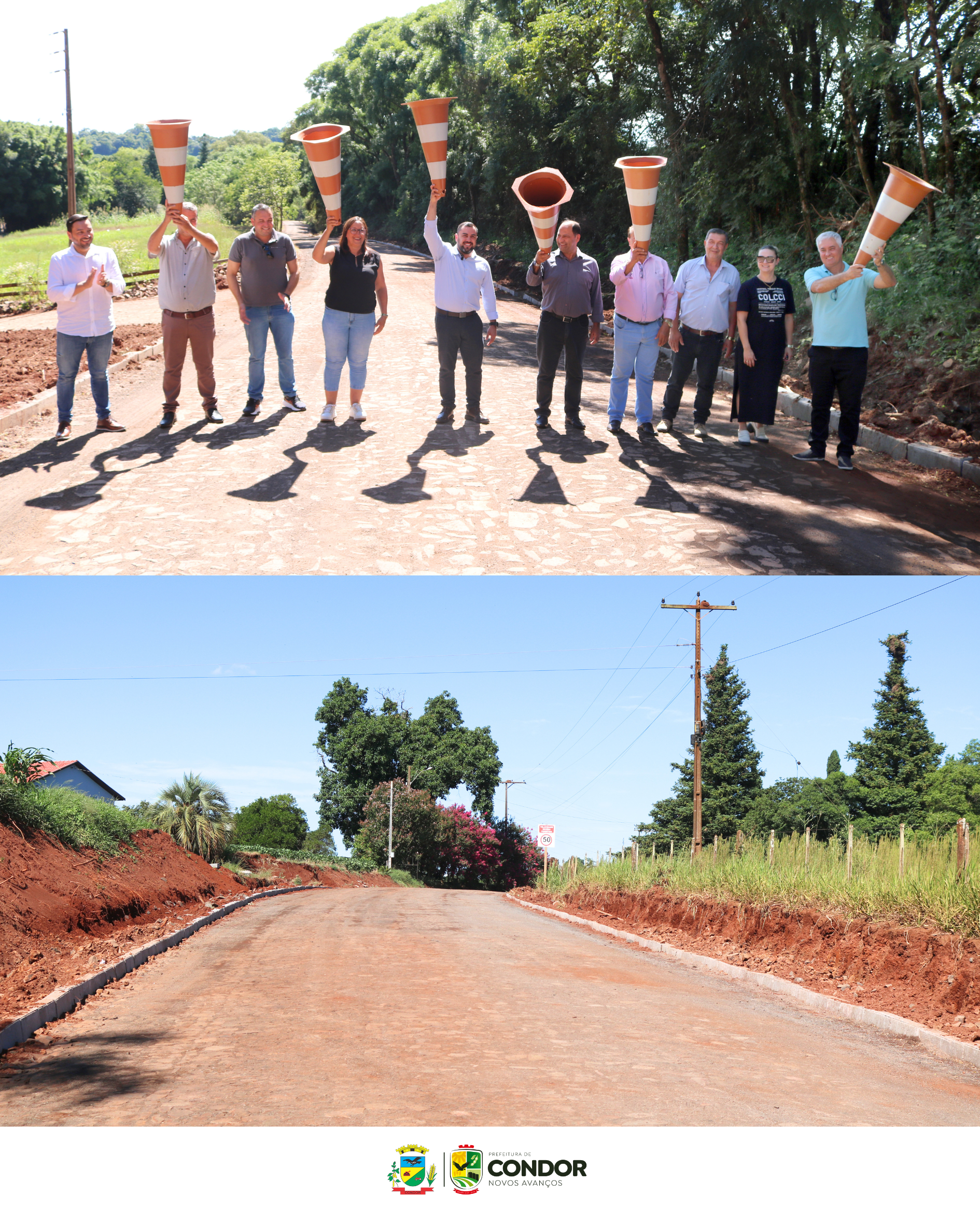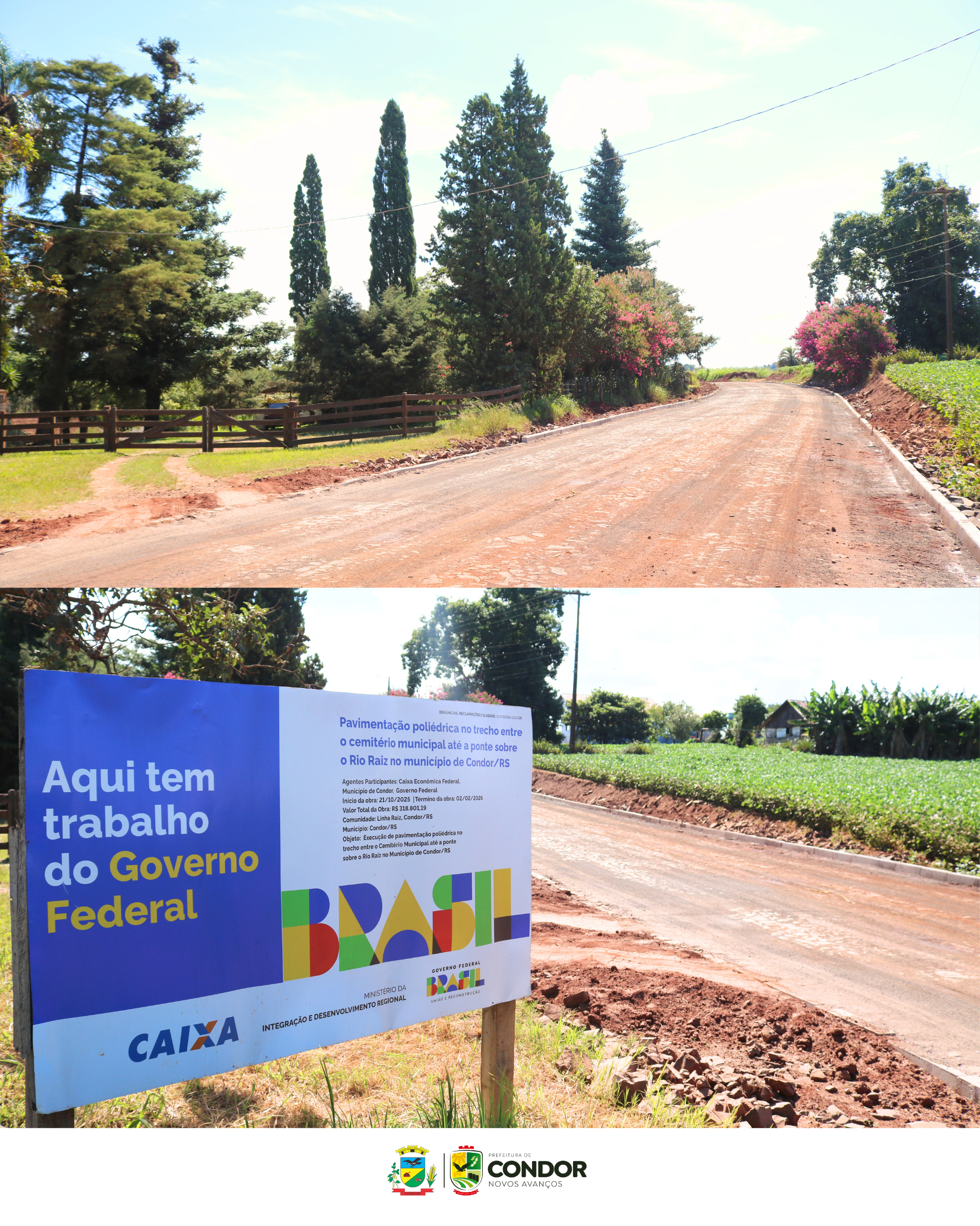 A Administração Municipal de Condor inaugurou a obra de calçamento na Linha Raiz, no interior do município. O projeto contemplou um trecho de aproximadamente 1 quilômetro, com pavimentação em pedras irregulares, melhorando as condições de tráfego e o acesso para moradores e produtores da região.